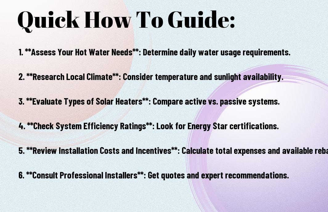 On assessing your energy needs is crucial in determining the right solar water heater system for you. You’ll want to calculate your average daily hot water consumption and any peaks during specific times of the year. This assessment will help you evaluate the capacity and size of the system required to meet your household’s demands.